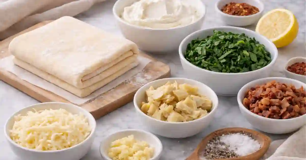 This version of spinach and artichoke pinwheels focuses on balance. The filling is creamy but not runny. The pastry stays flaky instead of dense. The flavor leans savory with just enough salt and garlic to keep things interesting. Whether you are hosting a holiday gathering, bringing something to a potluck, or just want a baked spinach pinwheels snack for movie night, this recipe fits.